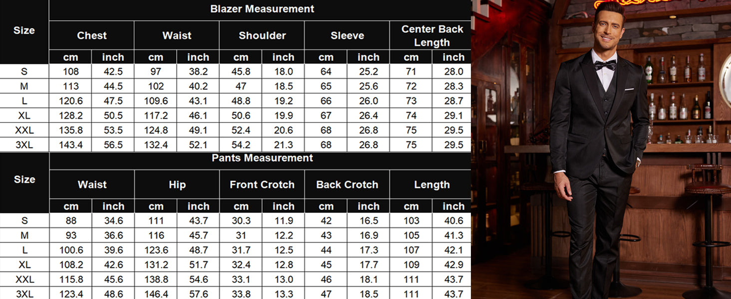 • Package Include: 1*blazer jacket, 1*vest, 1*suit pants, 1*bow tie