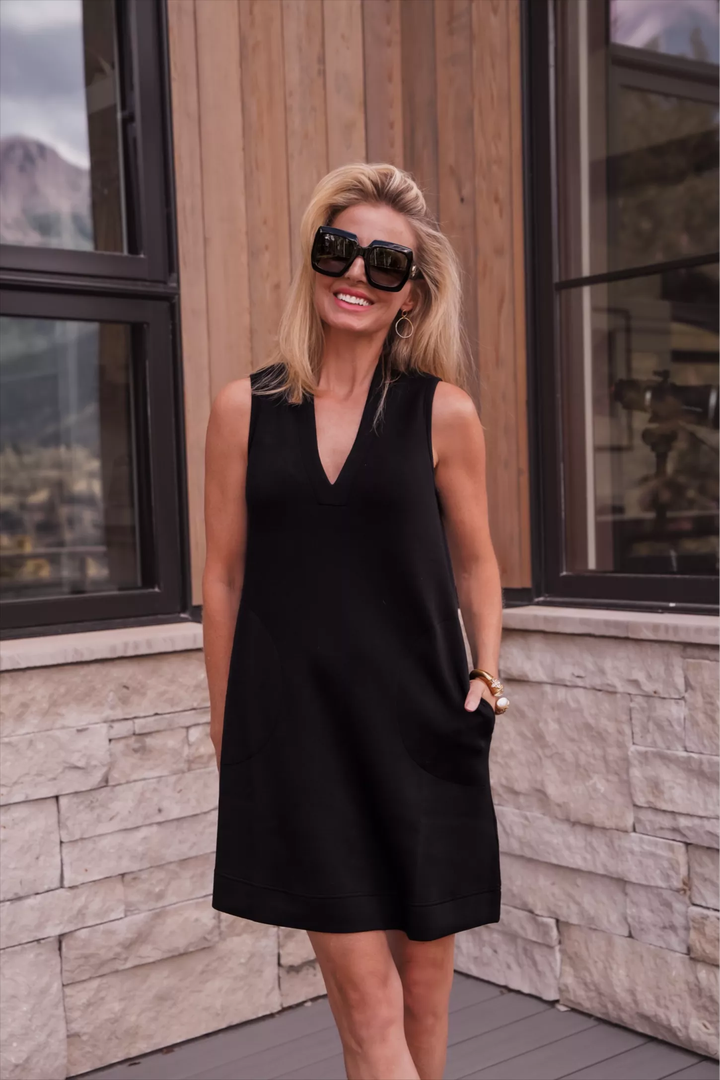 Luxurious comfort that goes anywhere. This mini dress features a relaxed fit, discreet pockets, and a V-neck/mock neck that offers just the right amount of coverage. In our luxuriously soft AirEssentials fabric that's breathable and ultra-drapey.