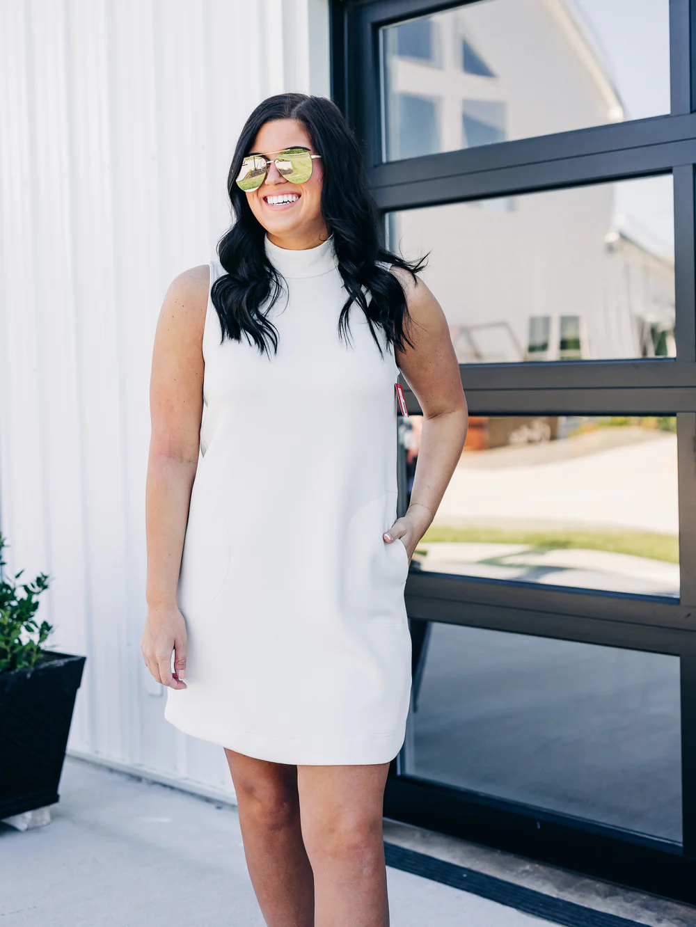 Thoughtfully designed low-profile pockets are seamlessly integrated into the dress, providing a discreet way to carry your phone or other essentials without compromising the dress’s sleek lines.