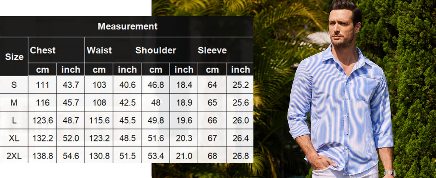 • Features: This long-sleeve-striped dress shirt is made of high-quality polyester fabric. Durable striped colors, wrinkle-free, skin-friendly, lightweight, relatively firm fabric, all give you a better wear experience.
