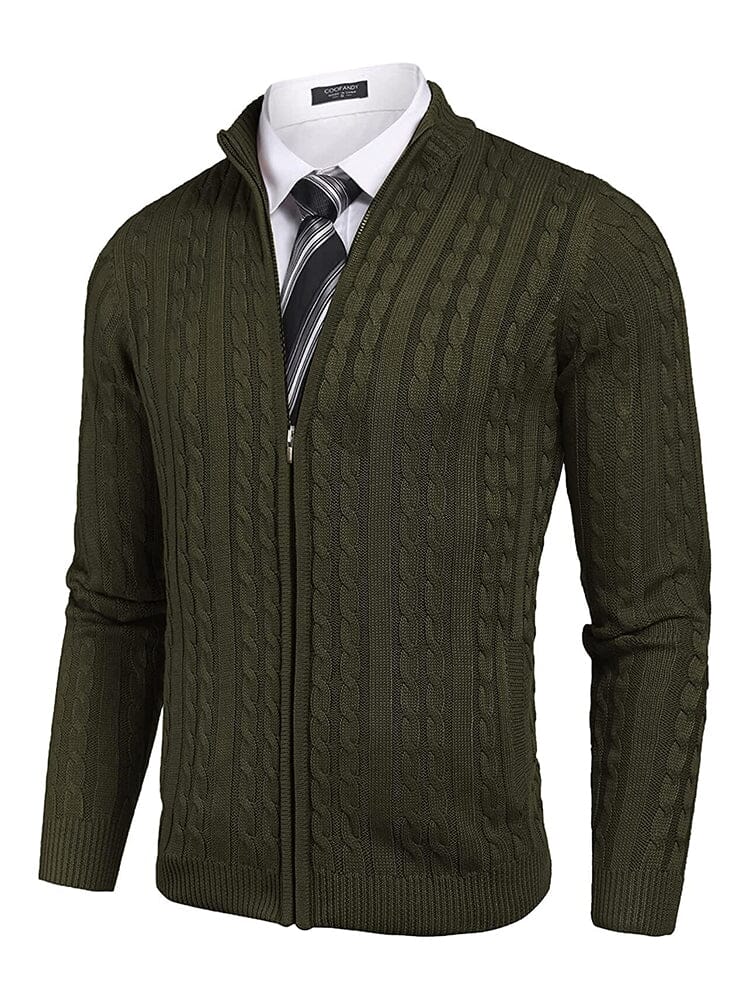 This Knitted cardigan zipper sweater design with wisted patterned, knitted fabric, basic designed, ribbed at cuffs and hem, high-neck and zip front thermal cardigans come with solid classical color
