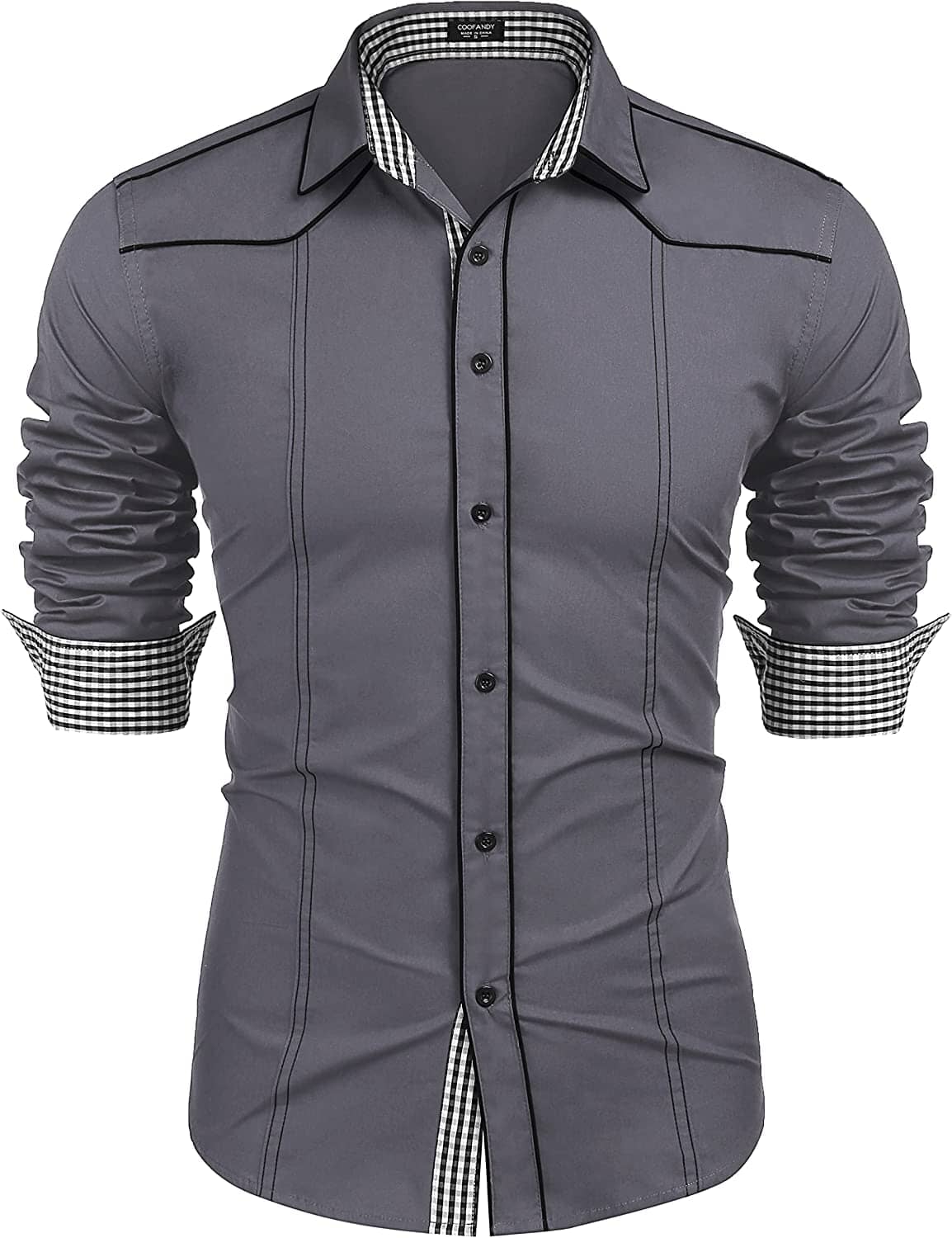 Fashion Design: Men's western cowboy shirt designed in contrast plaid collar and cuffs, long sleeve, regular fit, classic turn down collar, adjustable cuff, button down closure. The thin line on the front side of the men's cotton button down shirts, the edge of the collar and the line around the shoulders and buttons make you look stronger and tougher.