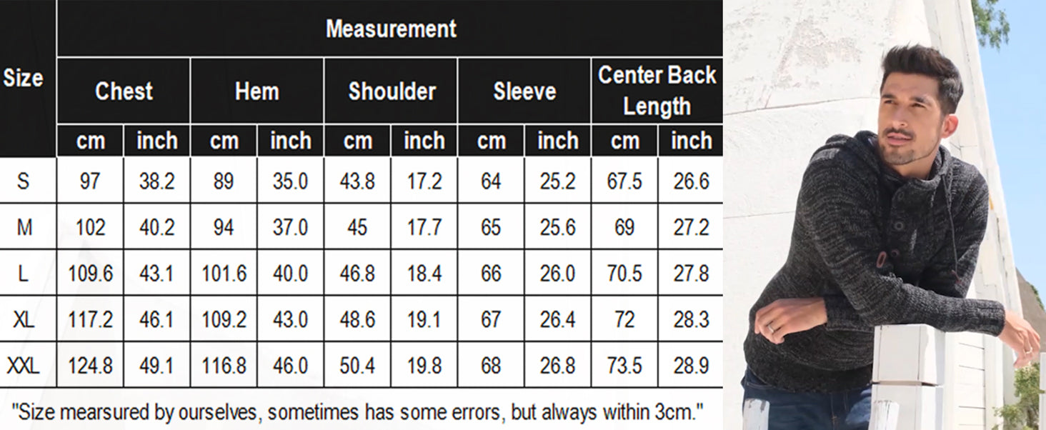 Fashion Turtleneck Modern Design --- Knit high collar sweater with a drawstring hood and double button design, adjusts maximum comfort at the neck, featuring with the turtleneck to warm your entire neck in cold windy. Classic, modern and stylish jumper sweater hoodie can be worn alone or in a jacket or trench coat.