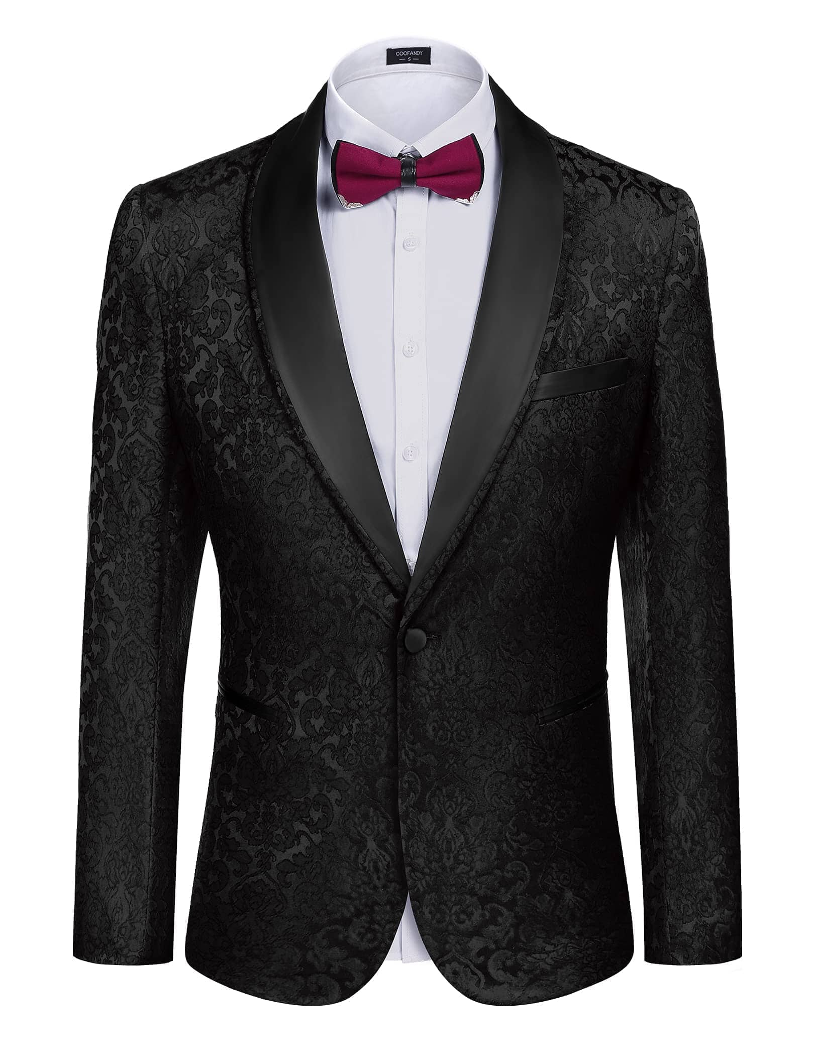 • FASHION DESIGN: Shawl lapel, single breasted one button closure, four-button cuffs, 1 chest pocket, 2 side pockets, 2 inner pockets. Superior jacquard floral pattern, unique and shiny jacket. This design makes men fashion, professional, energetic and confident.