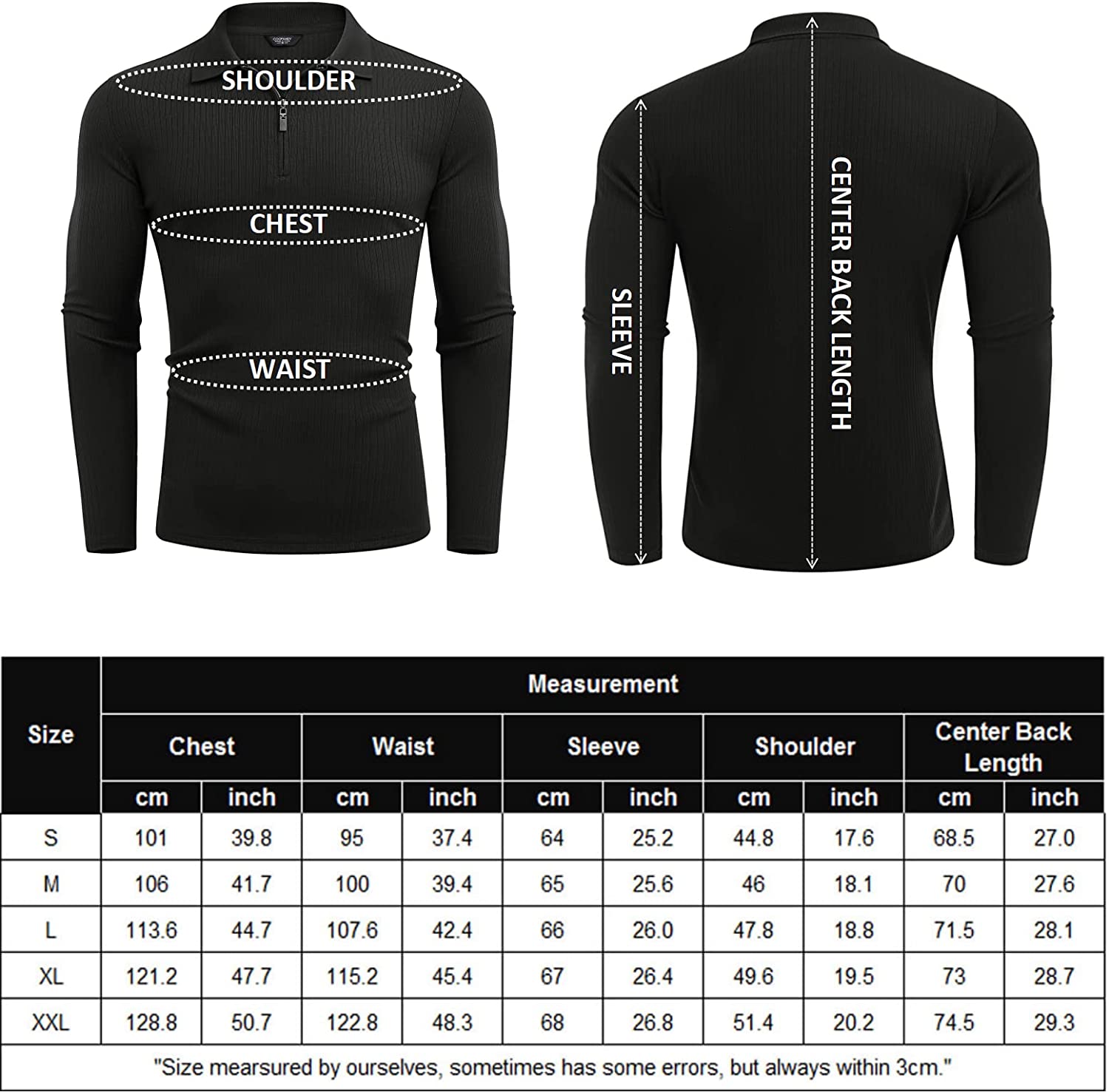 • STRETCH RIBBED FABRIC - Nice fit long sleeve polo shirts for men, which is made of ultra soft and stretch fabric, lightweight and comfortable to wear. Exquisite ribbed texture looks stylish and individual. This muscle t shirt is a perfect choice for a handsome and elegant look.