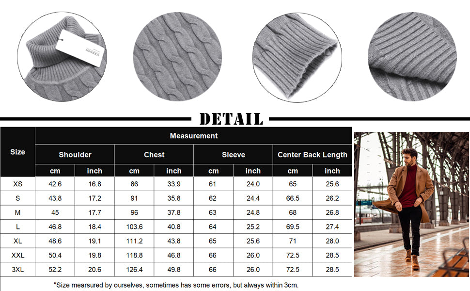 Machine washable. These turtleneck sweaters are slim fit, so if you wanna a regular loose fit style, please choose a larger size than you normally wear.