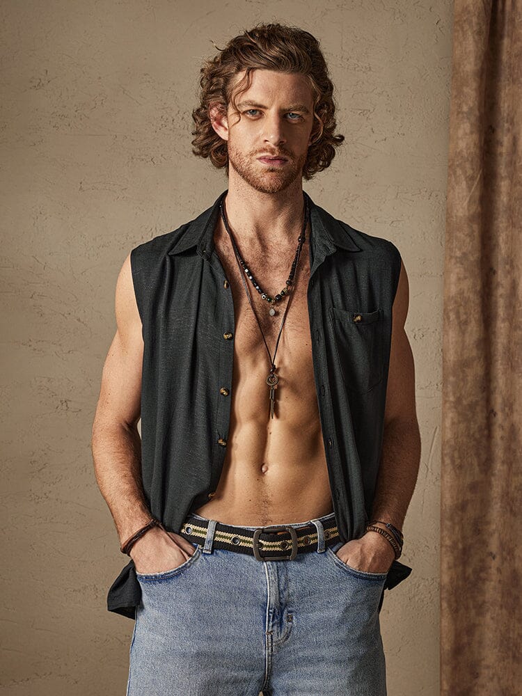 Solid Button Sleeveless Cotton Linen Casual Shirt