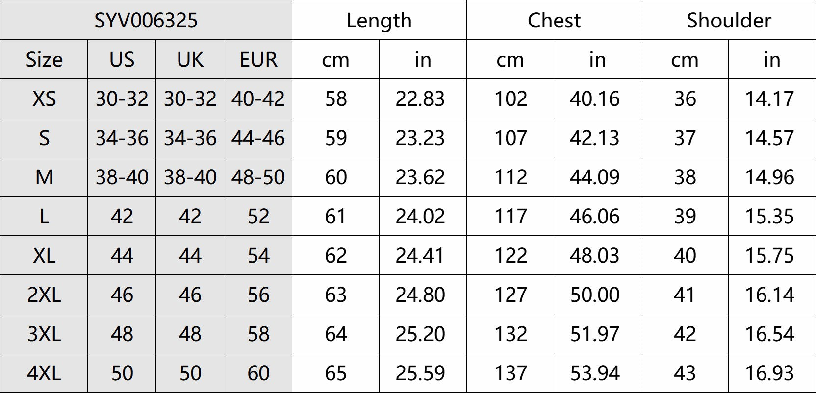 size chart
