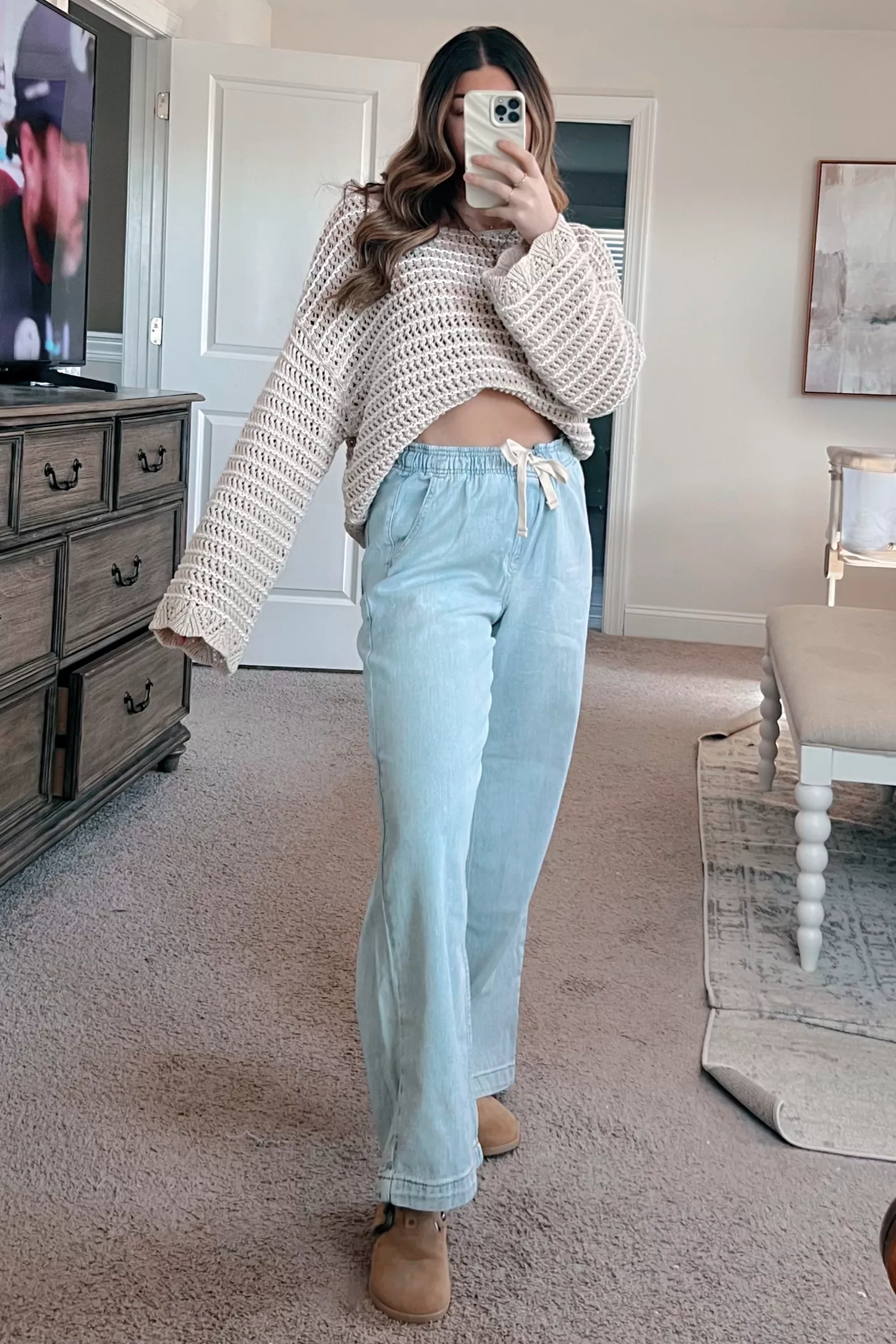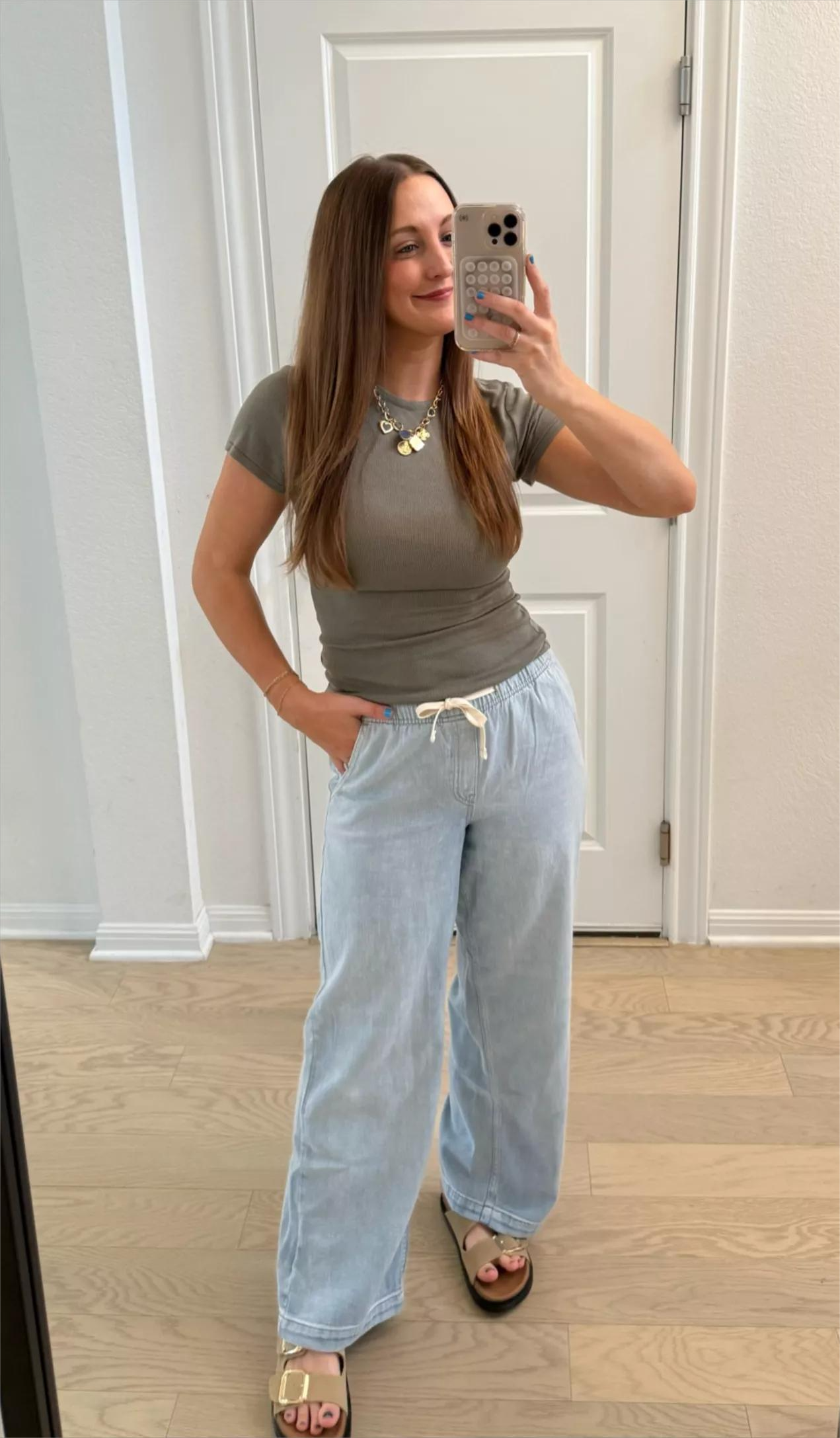 Loose Fit: The wide-leg jeans flatter all body figures—from apple to pear shapes, even the pregnant belly—by gently skimming curves and balancing proportions. Free to move and cover all kinds of imperfections skillfully in the legs.