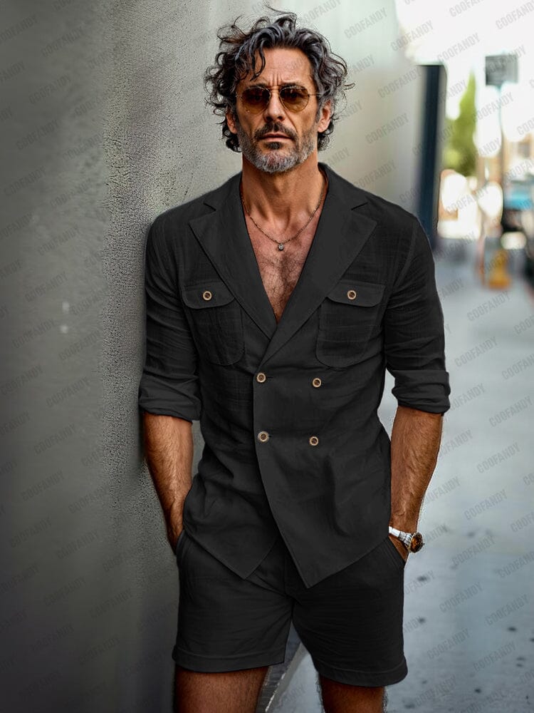 Lightweight Linen Blend Suit Jacket Shorts Set