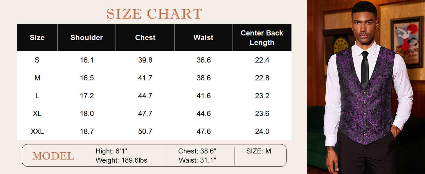 • Design: Paisley floral design, exquisite craftsmanship and V-Hem give this mens suit vest a classic and sophisticated look. Victorian style with a touch of steampunk and gothic elements.