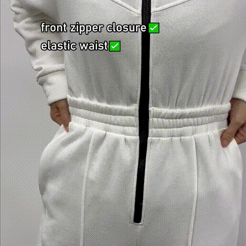 Get in and out of the jumpsuit with ease thanks to the full-length zipper. An elastic waist and high collar add definition to the relaxed fit.